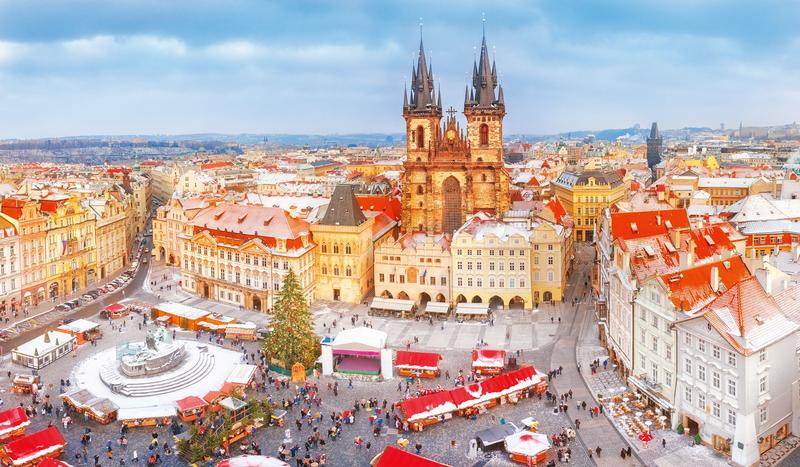 die weihnachtlich dekorierte Prager Altstadt